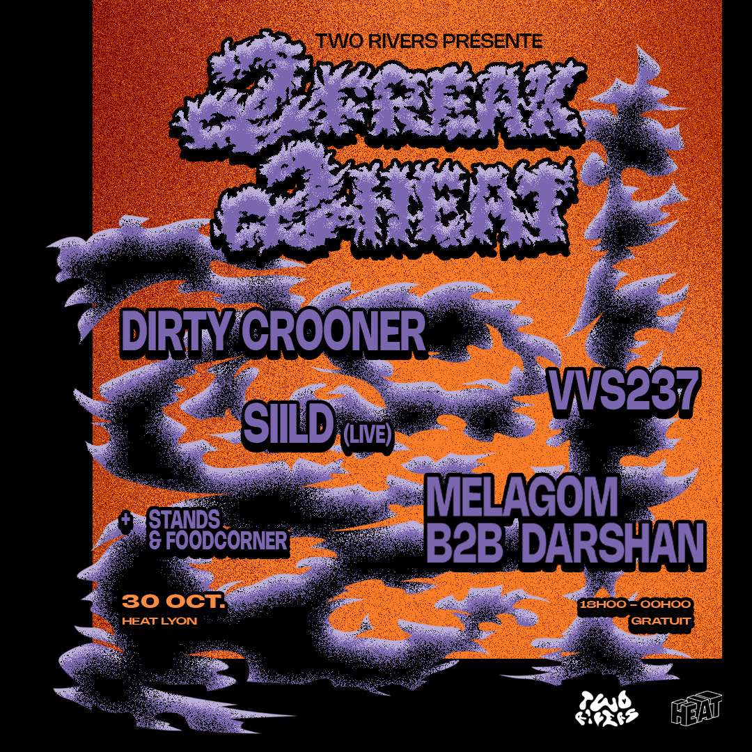 TWO RIVERS est de retour au HEAT au cœur de l’automne pour un événement spooky-freaky : DJ sets évolutifs live rap alternatif, le tout accompagné d’exposants lyonnais et de quoi se restaurer 🎃
