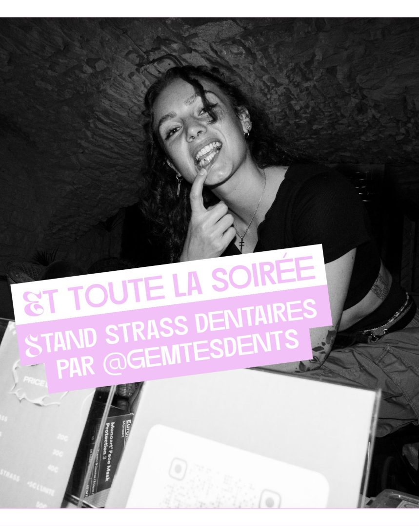 Et toute la soirée : Stand strass dentaires par @gemstesdents et affiches de @troty__