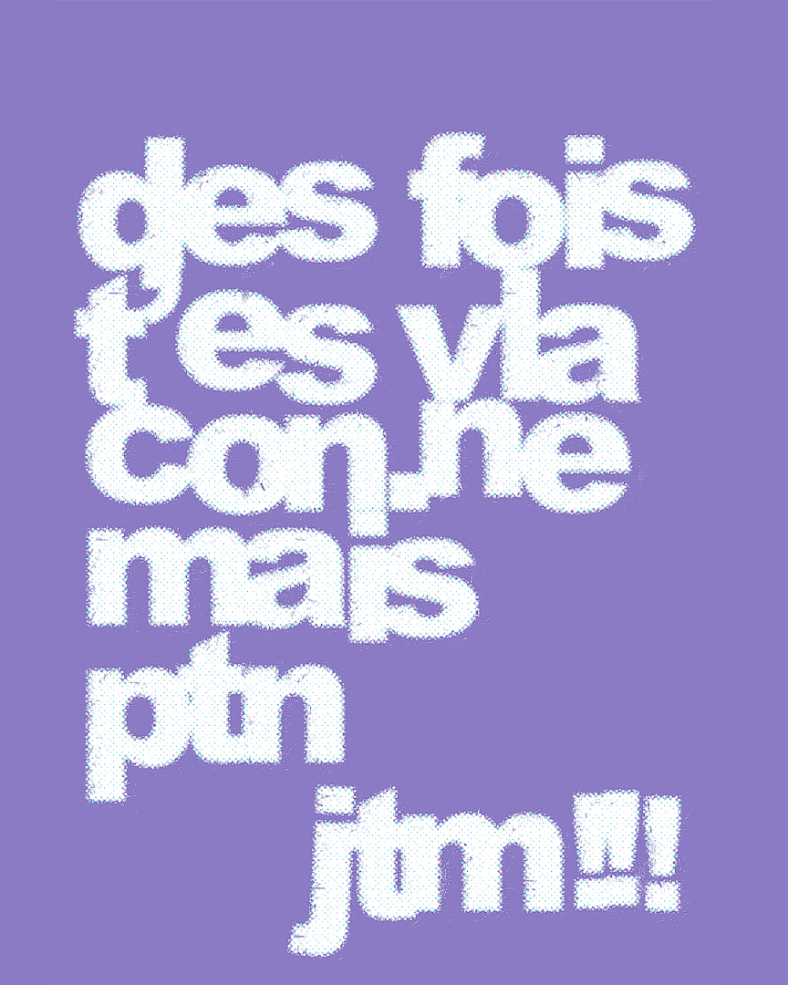 Ptitecopine Design est un projet graphique qui mêle typo brute, vibes 8bit et petits mots doux qui font rougir. Lyonnaise depuis 10 ans, autodidacte, Ema design des posters, cartes et identité graphiques pour le plaisir ou pour des collectifs artistiques émergents.