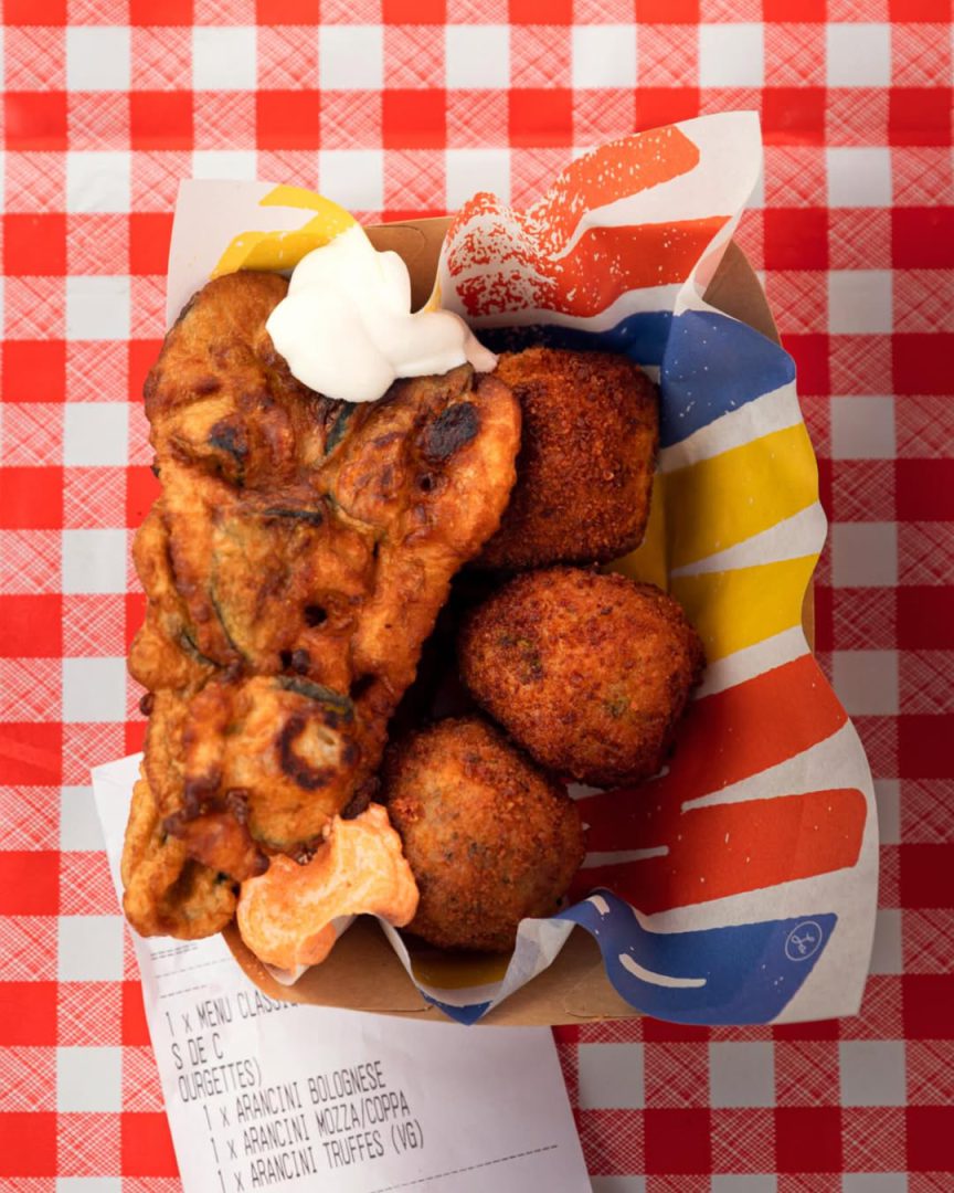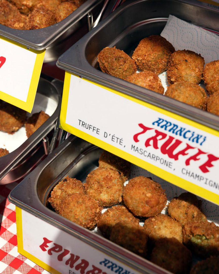 Nous proposons notamment des arancini, une spécialité venue tout droit de Sicile ! Si cela ne vous parle pas encore, ce sont de petites boules de risotto fourrées et frites sur place, ce qui leur donne une texture croustillante à l’extérieur et bien fondante à l’intérieur !